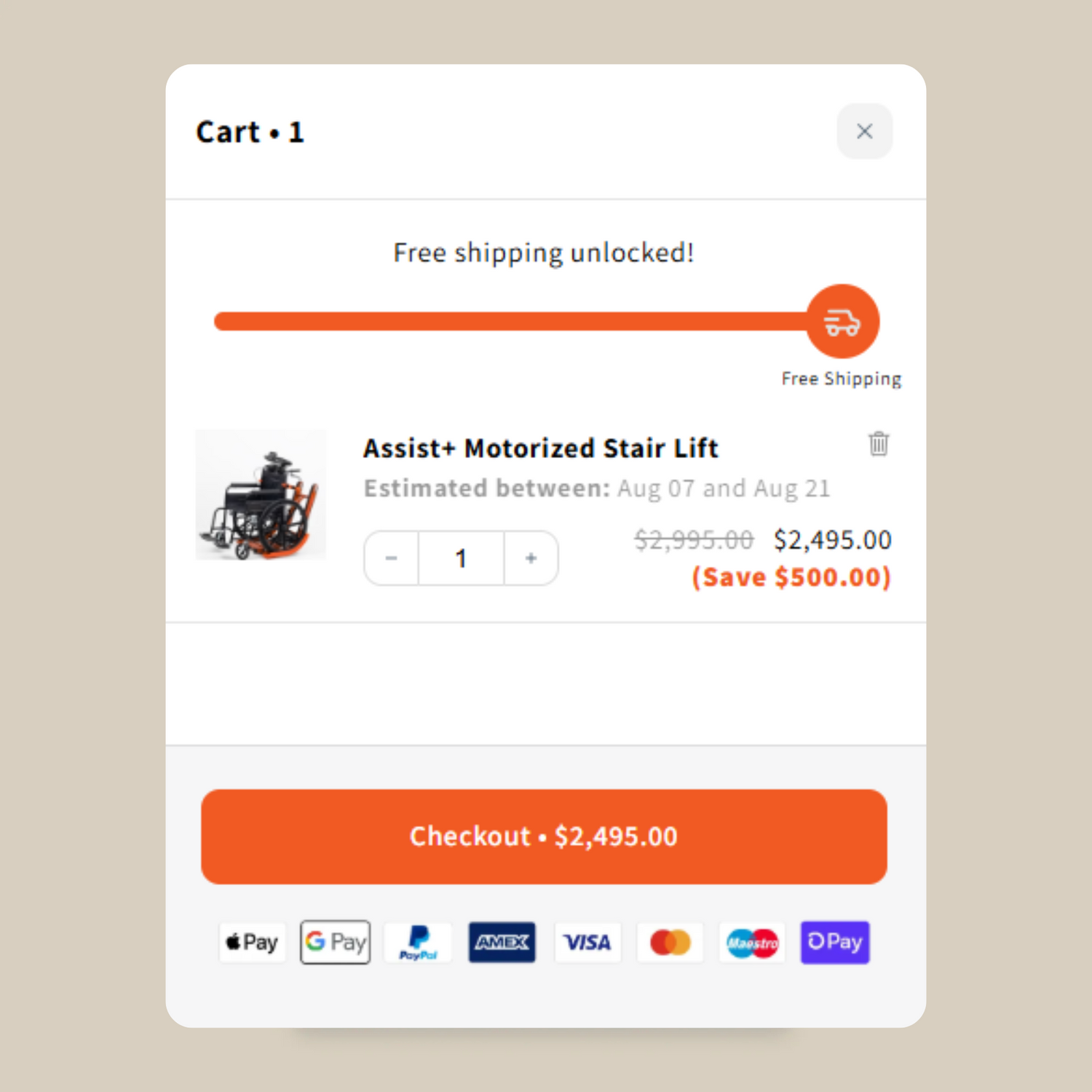 Start by choosing the product that fits your needs like Assist+ for intelligent stair climbing with a wheelchair. Add it to your cart and head to checkout.