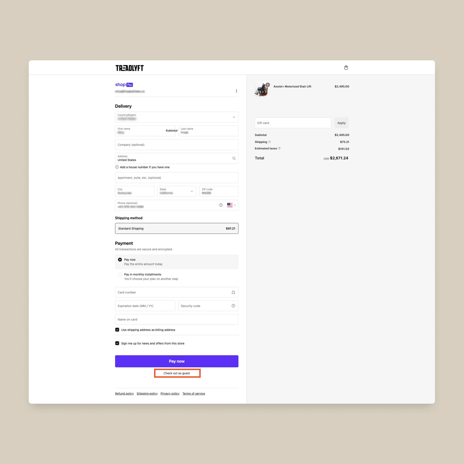 If you're signed into ShopPay, you'll need to select āCheck out as guestā instead. Truemed doesnāt work through ShopPay, so this step is key to using your HSA or FSA.