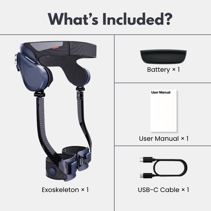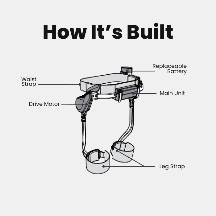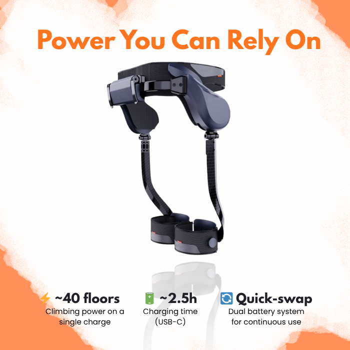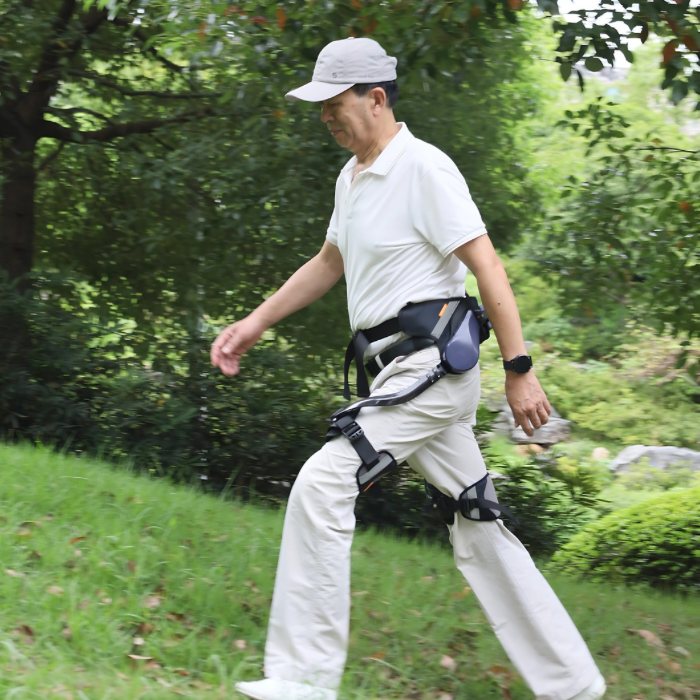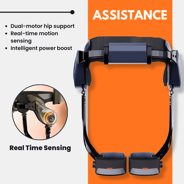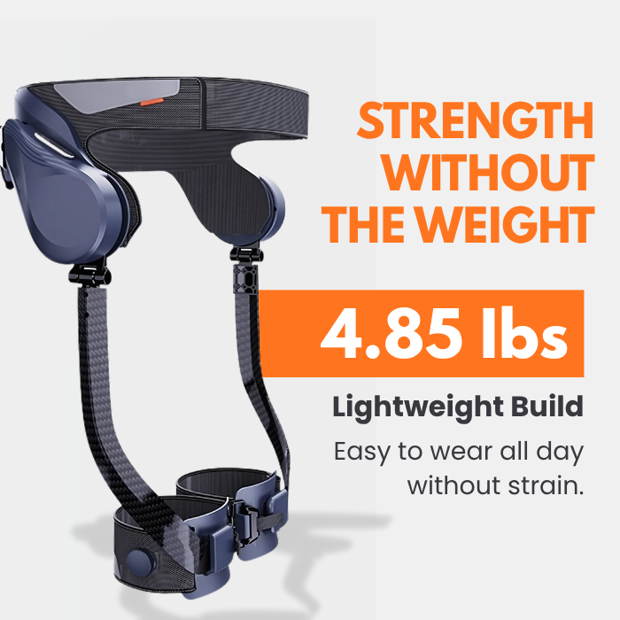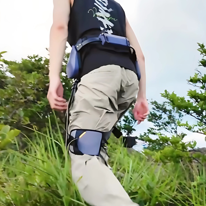 Lightweight wearable frame with AI-powered assistance, designed to support your hips and legs during walking, climbing, or hiking.